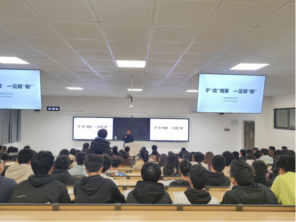 于基础组团R101教室开展主题为“于‘齿’相聚 一见倾‘新’”师生交流座谈会。院党委书记张军梅,党委副书记、院长马洪到现场与同学们亲切交流,耐心解答同学们提出的问题。