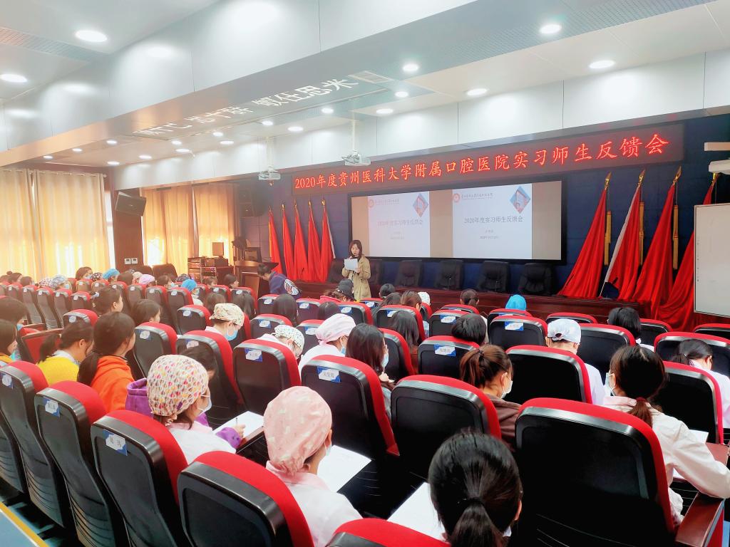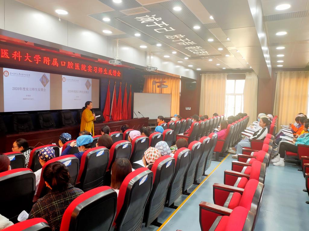 护理部在行政楼5楼学术报告厅召开2020年度实习护士师生反馈会。会议针对医院护士实习工作进行了反馈和总结,并听取了学生实习期间的意见和建议。会议由护理科副主任吴姗主持,护理科主任陈仕红、贵州护理职业技术学院肖莎、医院带教老师代表及所有实习护士参加会议。
