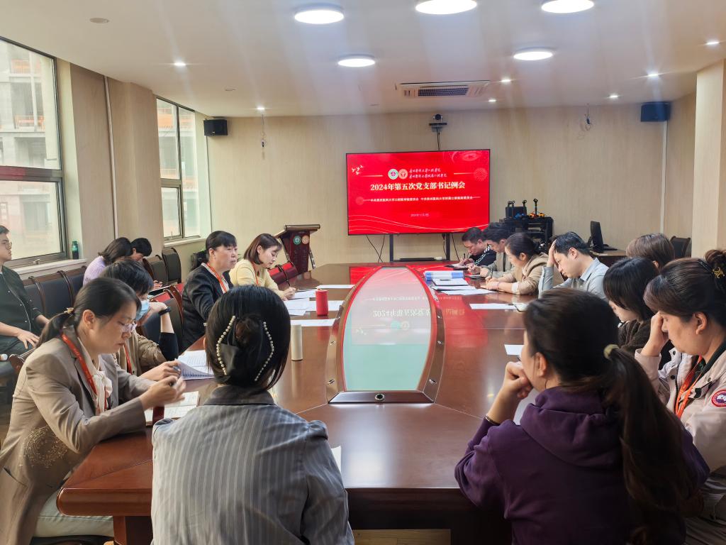 第五次党支部书记例会在综合会议室召开。院党委书记张军梅、党委副书记何雨羲、纪委书记郑慧颖、党委青年委员刘洪静、党支部委员参加会议。会议由何雨羲主持。