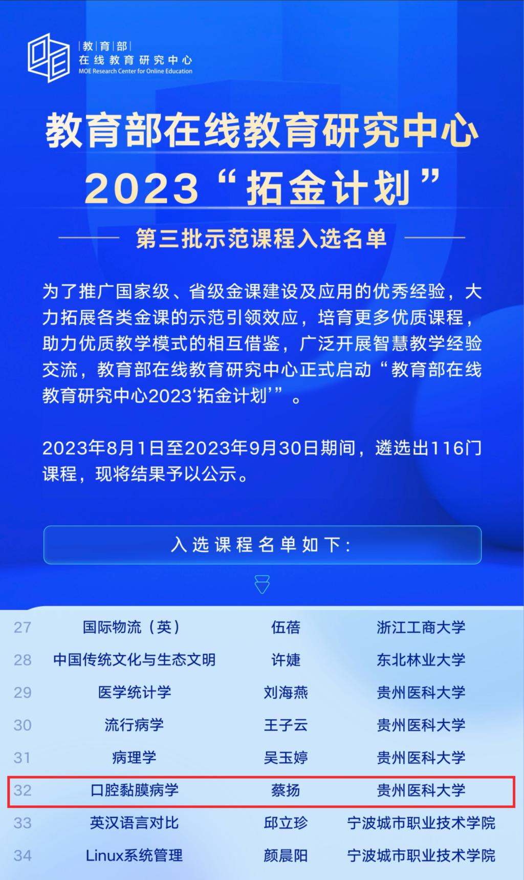 2、以高质量党建促进教学改革,建设成果丰硕。教研室教师共获教改项目9项;课程负责人团队制作微课《复发性阿弗他溃疡》获得全国高校(医学类)微课教学比赛三等奖及第二十五届全国教师教育教学信息化交流活动的“典型作品”荣誉称号;2022年《口腔黏膜病学》荣获省级“金课”;2023年《口腔黏膜病学》入选教育部在线教育研究中心“拓金计划”示范课程;蔡扬团队获2022年口腔医学院教学创新大赛一等奖、第二届全国高校教师教学创新大赛校级选拔赛正高组二等奖;2023年王亚静、王珣获得校级教学创新大赛二等奖;2024年靳大力获得院级教学比赛一等奖和校级教学比赛二等奖。
