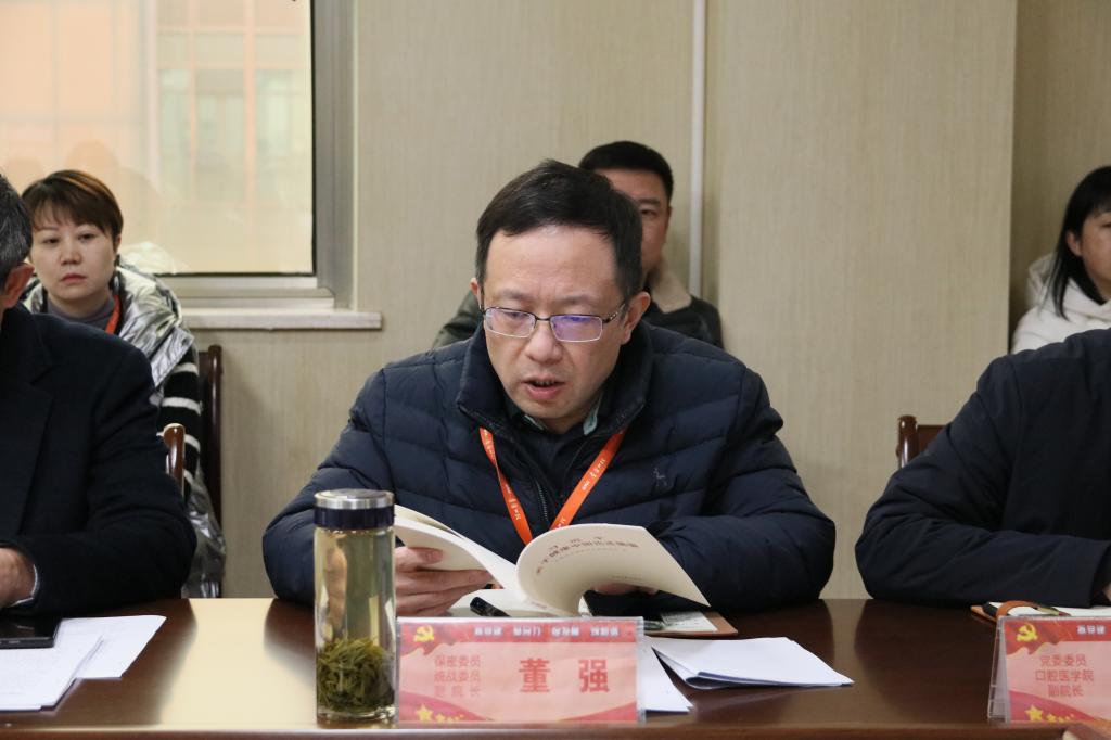 会上,张军梅领学习近平总书记在庆祝中华人民共和国成立75周年招待会上的重要讲话精神;党委副书记、院长马洪领学习近平总书记在中共中央政治局第十八次集体学习时的重要讲话精神;党委副书记何雨羲领学习近平《论教育》——推动城乡义务教育一体化均衡发展,让人民享有更好更公平的教育;党委委员、副院长唐正龙领学习近平、丁薛祥同志在全国教育大会上的讲话;党委委员、纪委书记郑慧颖领学中共中央办公厅关于推进党纪学习教育常态化长效化的意见;党委委员、副院长董强领学《习近平关于健康中国论述摘编》——坚持中国特色卫生与健康发展道路;党委委员、副院长廖健领学《中共中央、国务院关于弘扬教育家精神加强新时代高素质专业化教师队伍建设的意见》;青年委员刘洪静领学中共贵州省委党的建设工作领导小组关于印发《贵州省党纪学习教育总结报告》的通知。