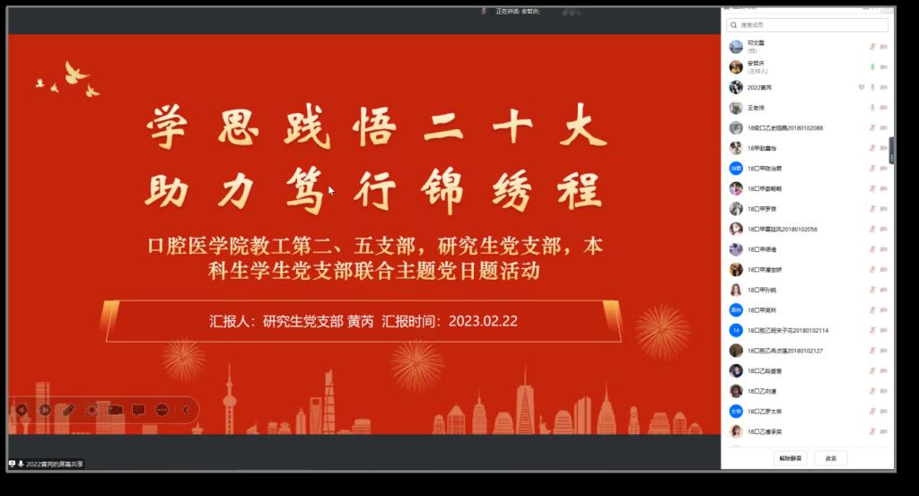 开展多项活动,如“卯兔迎春,新春祈福”送祝福、“学思践悟党的二十大精神,助力笃行锦绣程”共商共建、邀请考研学生分享考研经验以及“搬家不费力,党员来助力”等活动,展现党员服务风采。此外,由本科生党支部牵头组织全院学生开展“21天习惯养成挑战”,已连续四年带领全院同学挑战自我,取得良好效果。