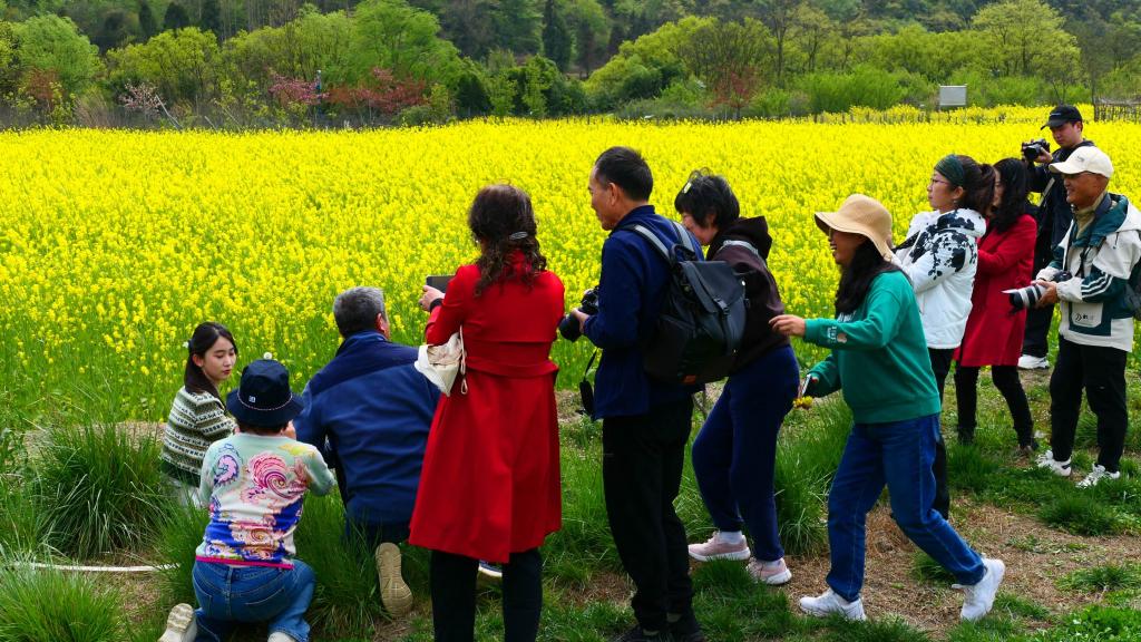 迈入风光旖旎的小河湾,春日的勃勃生机迎面扑来,金黄色的油菜花海与洁白的梨花、粉嫩的桃花交相辉映,共同绘制出一幅壮丽的画卷。党员同志们围绕摄影作品,交流心得体会,在细致观察自然生态的过程中,进一步深化对“绿水青山就是金山银山”的理解。