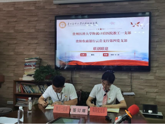 (后文简称“口腔医院”)与贵阳农商银行云岩支行第四党支部在行政楼五楼会议室以“联创联建闯新路 党建引领促发展”为题开展医银党建共建主题党日活动。