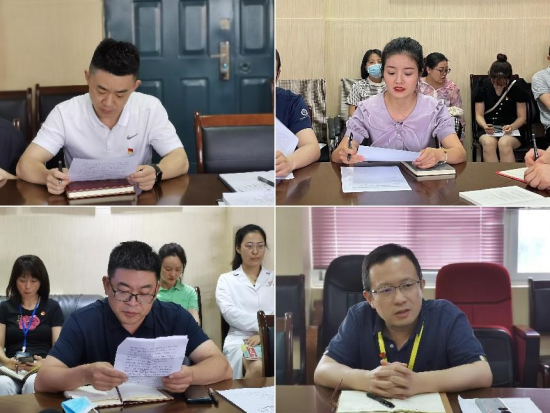 随后,根据《贵州医科大学口腔医(学)院党支部“杏林头雁”书记工作室创建方案》要求,十二个教工党支部分别以“双培养抓团队、双带头树标杆、双强促融合”理念,围绕两院中心工作,突出“书记素质硬、党员队伍强、工作机制佳、作用发挥好、群众评价高、遵守纪律严”创建标准,介绍了2022年上半年支部工作和支部书记工作室建设情况,并针对支部书记工作室下半年工作重点作汇报。