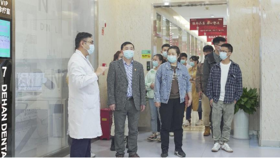 应届毕业研究生、结业规培生高质量就业,4月22日,研究生党支部书记、研究生科研管理科、毕业后医学教育管理科科长廖健,副科级组织员、研究生辅导员陈培各,规培专职管理教师吴秋蓉及20余名学生赴德韩口腔医院(花果园机构)开展“我为群众办实事,助力毕业生就业”主题党日活动。