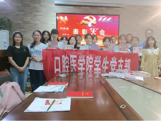 本科生党支部于7月份实行了《口腔医学院学生党支部党员积分管理办法(试行)》,规范党员思想、行为。经过一个季度的推行,党员积分管理激励作用初见成效,支部党员争先创优本领进一步提高。会议对积分最高的三位党员即本科生支部“季度之星”张思、王天彤、陈治君进行表彰,以树立模范。