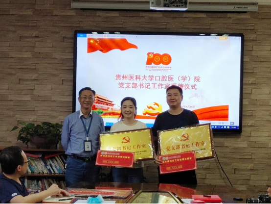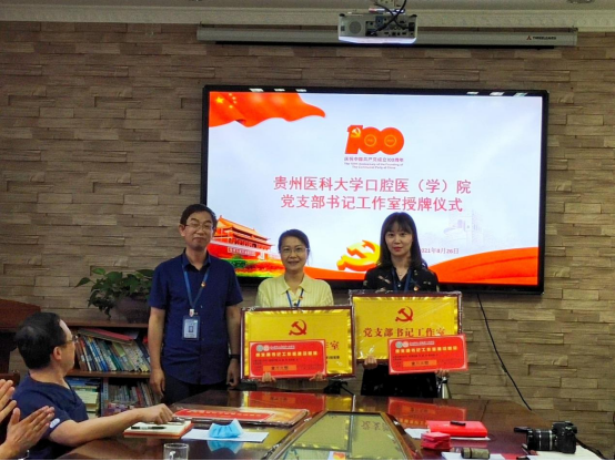 党委副书记、院长马洪为教工四(修复种植)支部、教工五(口腔正畸)支部 、教工六(牙周黏膜)支部授牌