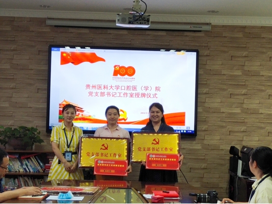 党委书记张军梅为教工一(行政)支部、教工二(教管)支部、教工三(口腔颌面)支部授牌