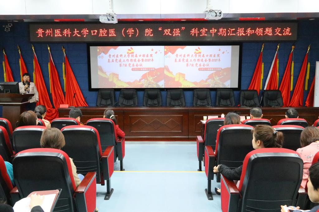 会上,“双强科室”口腔颌面外科主任吴亚东、口腔修复种植科代表田艾、牙周黏膜科主任蔡扬、口腔综合急诊科主任刘洪静依次作汇报,分别从科室党建、临床、教学、科研等方面汇报了自成立“双强”项目以来所取得的部分成果,同时对进一步加强党建与业务深度融合提出了下一步工作思路。