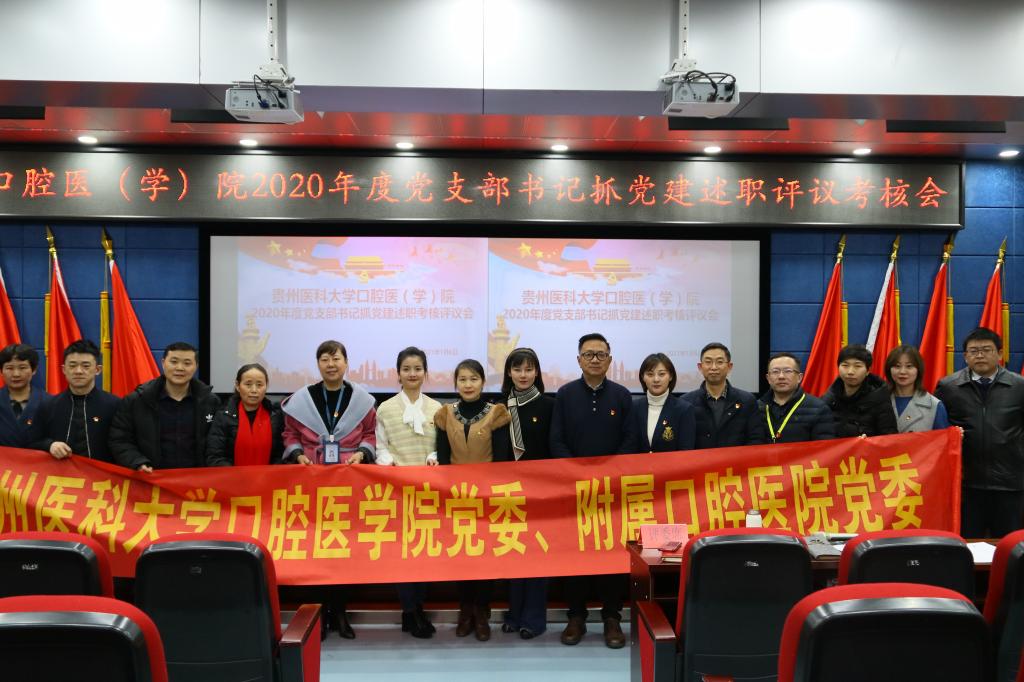 为深入贯彻落实习近平新时代中国特色社会主义思想和党的十九届五中全会精神,全面落实党要管党、全面从严治党,提高党建工作质量,根据贵医党通〔2020〕100号《关于开展2020年度党支部书记抓支部党建述职评议考核工作的通知》文件要求,1月6日,口腔医(学)院在行政楼五楼学术报告厅召开“2020年度党支部书记抓党建述职评议考核会”。党委班子成员出席会议并点评,全院副科级以上干部、各基层党支部书记、全体党员及群众代表参加会议。会议由学校党委宣传部(精神文明办公室)副部长(副主任)、原口腔医(学)院党委副书记钱禾主持。