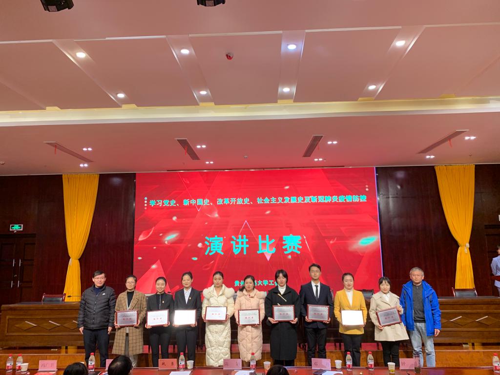 于近期参加了贵州医科大学在花溪校区大礼堂举行的“学四史”演讲比赛。院党委副书记钱禾、团委副书记蒋韵娴带队参赛。