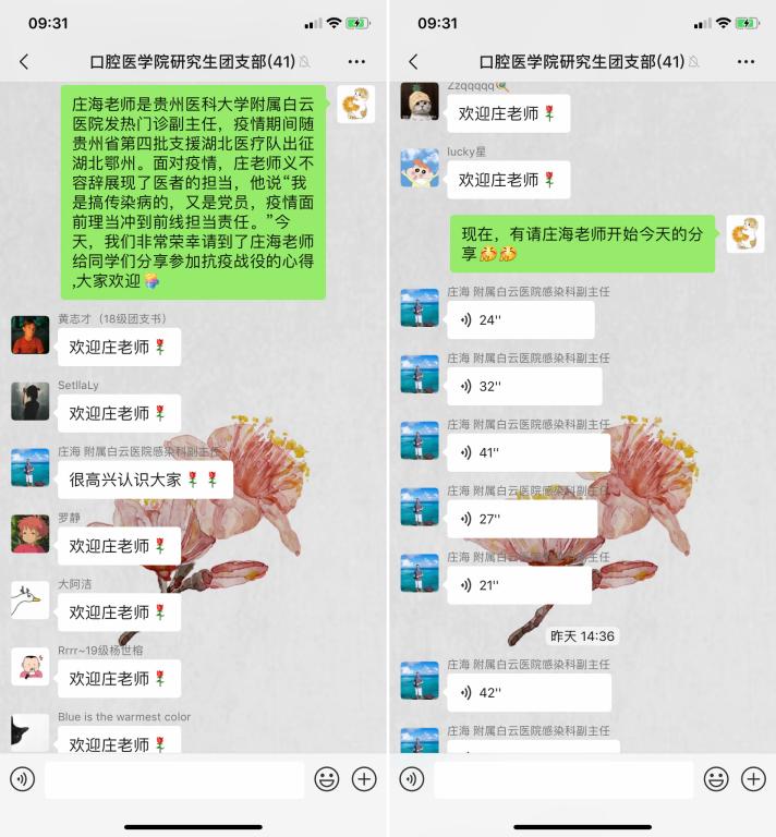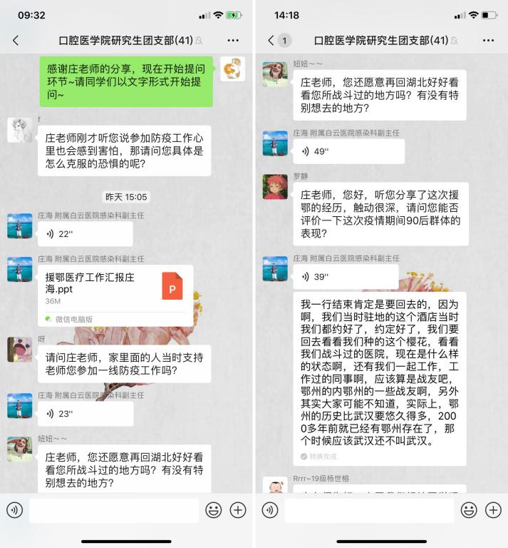 邀请了贵州医科大学附属白云医院感染性疾病科的庄海老师与各位研究生团员共上一堂 “云课堂”思政课。庄海老师曽随贵州省第四批支援湖北医疗队出征湖北鄂州,他分享了在武汉抗“疫”一线的所见所闻所感。91直播