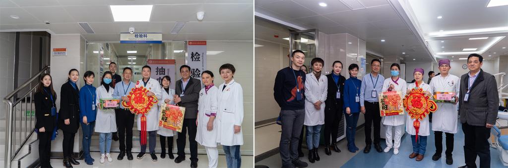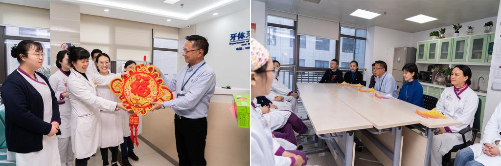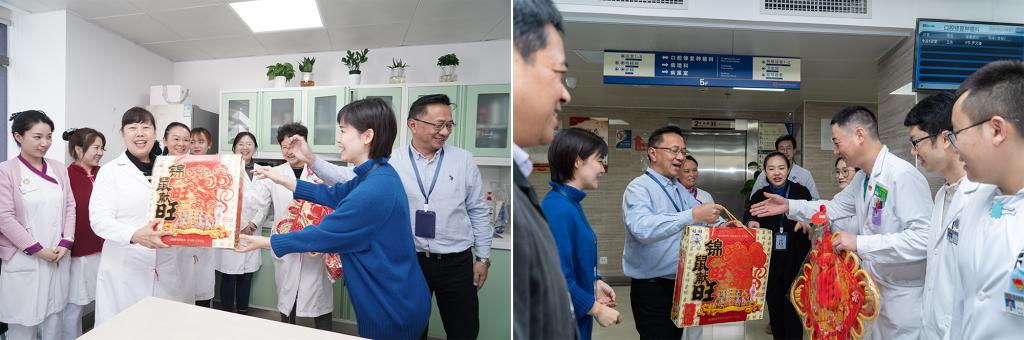 1月21日,为进一步增强全体职工的战斗力和凝聚力,使全院职工充分感受到医院的关怀,在院党委书记张军梅,党委副书记、院长马洪,党委副书记钱禾的带领下,党办、院办、工会、医务科、护理部等相关科室的负责同志一行来到口院大楼各科室,为全体一线职工送去关怀与慰问品,并与困难职工进行了亲切座谈。