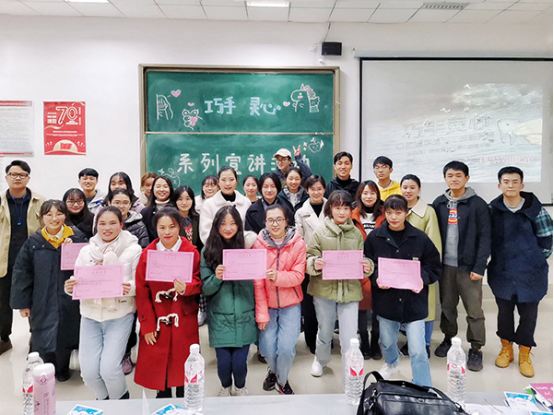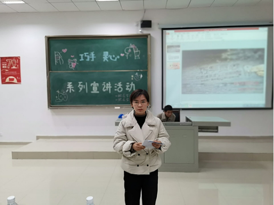 11月27日,第三届“巧手灵心”口腔医学院手工技能竞赛第二站“爱牙护齿,言传躬行”科普宣讲在南校区7401教室展开。院党委副书记钱禾,学院团委副书记刘逸洲,学生科副科长张婷,医院团委副书记蒋韵娴,医院团委段姗姗,医院职工徐正杨、倪一民、谭雯珈,学院2017级研究生程余婷以及医药卫生事业管理学院、儿科学院、药学院、医学影像学院、生物工程学院的学生会代表担任此次活动评委。口腔医学2018级甲乙两班共计80余名同学参加此次比赛。