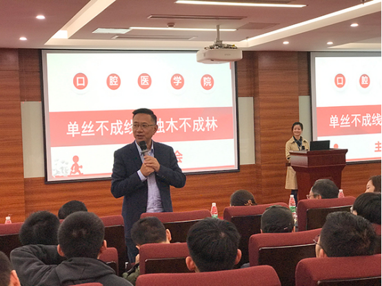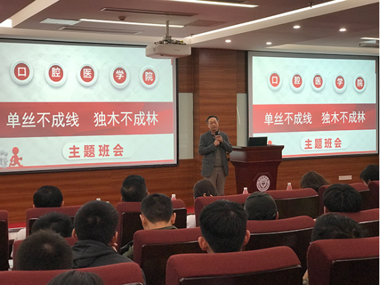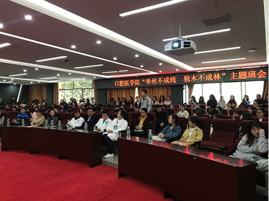 为深入贯彻落实《关于开展2019年度贵州医科大学领导干部深入基层联系学生工作的通知》文件精神,11月12日,91直播 领导干部深入班级联系学生,参加口腔医学2016级“单丝不成线,独木不成林”主题班会。院党委书记张军梅,党委副书记、院长马洪,副院长王永,党委副书记钱禾以及相关部门负责人参加此次主题班会。主题班会由学生科负责人张婷主持。