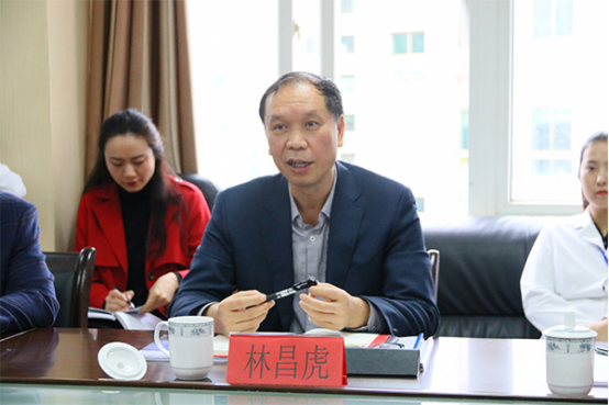 林昌虎对口院正式运营两年取得的工作成效表示肯定,对主题教育阶段口院的党建工作表示赞许,他指出,口院在“一套人马两块牌子”的现状下高质量发展,取得的成绩喜人。他强调,发展不能“等”、不能“靠”,但资源是“要”来的,要在争取中为发展储备力量。并就口院的发展建设和公立医院党的建设提出了要求,口院要进一步加强公立医院党的建设,贯彻落实党委领导下的院长负责制;要以基层组织建设为中心,加强医德医风建设,注重服务意识和人文关怀,揽住“回头客”,增加门诊量;要在年总产值高速上升的情况下,深度抓内部管理和廉政建设;要进一步做好医教研协调发展,在重视储备人才、承担社会责任等方面有新突破。人才培养是未来发展中的关键,要努力做到“待遇留人、事业留人、感情留人”,让职工“开心工作、体面生活”,搭建好人才发展的平台吸引人才,希望口腔医学院、附属口腔医院能在未来的学科建设中取得好成绩,助力学校发展做出贡献。