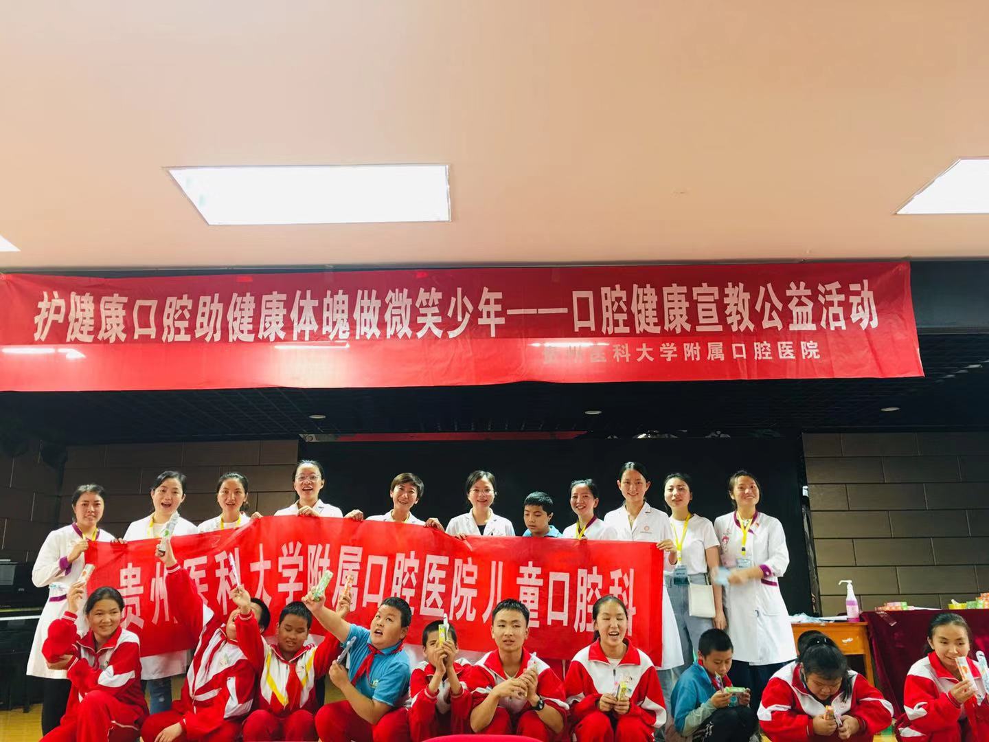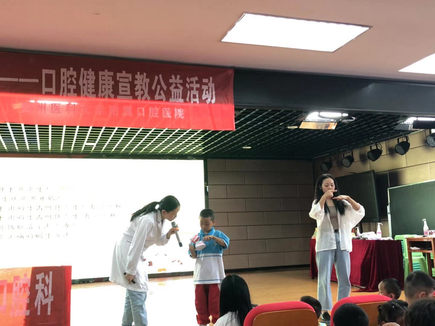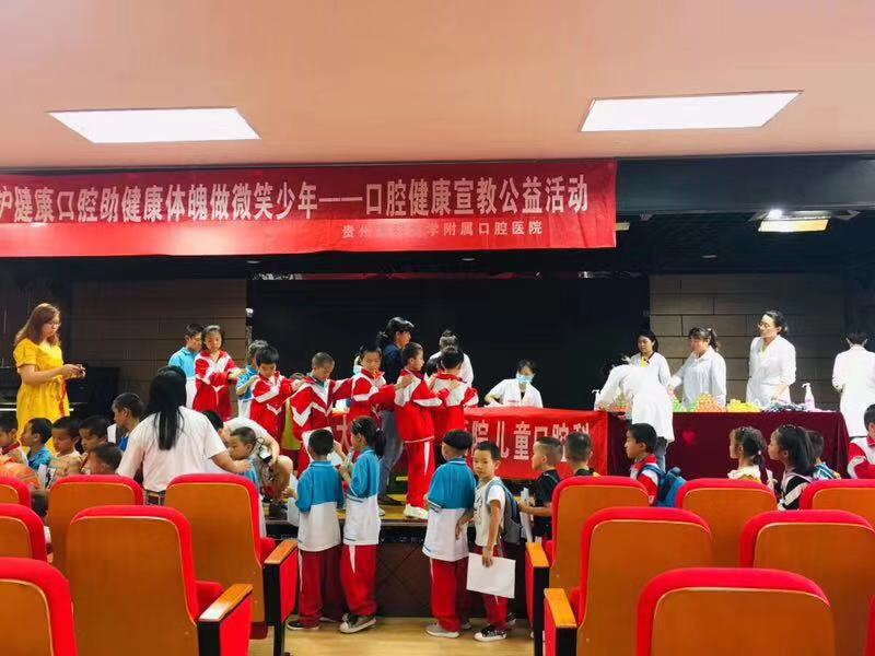 医护人员走访多地进行相关活动,如:走进贵阳市盲聋哑学校为这群特殊儿童进行口腔义诊,把爱和健康带给这群孩子;走进贵阳市e智幼儿园为小朋友进行口腔检查及口腔健康知识宣教,同时还举办了“小小牙医”体验活动。通过举办该系列活动使儿童更好的了解口腔健康的重要性以及口腔疾病的防治措施,借此提高口腔健康水平。