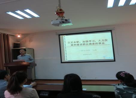 报告会由王永副院长主持。张军梅书记、马洪院长、唐正龙副书记根据自己的学习体会和分管工作,分别作了题为《开展党的群众路线教育实践活动的重大意义》、《立足本职,加强学习,大力发展和建设群众满意的事业》、《开展党的群众路线教育实践活动与学生工作的关系》的专题辅导。 三位领导对此次专题辅导报告会高度重视,精心准备,并制作了多媒体的课件。通过声形并貌的讲授,使参加学习的人员对党的群众路线教育实践活动的精神有了更深刻的认识。