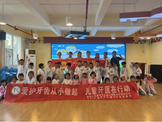 近日,教工第十一党支部(预防及儿童口腔科)组织多名科室骨干及党员干部走进红黄蓝幼儿园、乌当幼儿园开展“爱护牙齿从小做起,儿童牙医在行动”主题党日活动,为近400余名孩子免费进行口腔诊疗服务和口腔保健知识宣教活动。