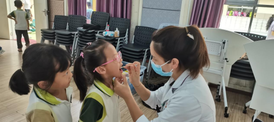 紧接着,举行了“小小牙医”体验活动。在医生的指导下,“牙医们”用口镜给身边的小朋友检查牙齿,让大家进一步了解牙齿结构,体会到爱牙护齿的重要性。