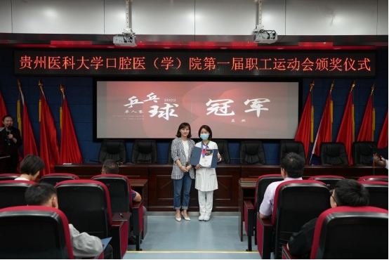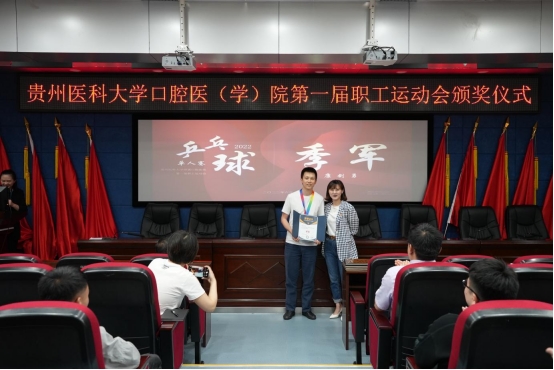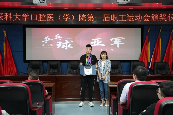 党委副书记何雨羲为乒乓球单人赛冠亚季军颁奖