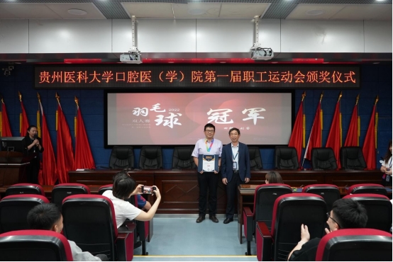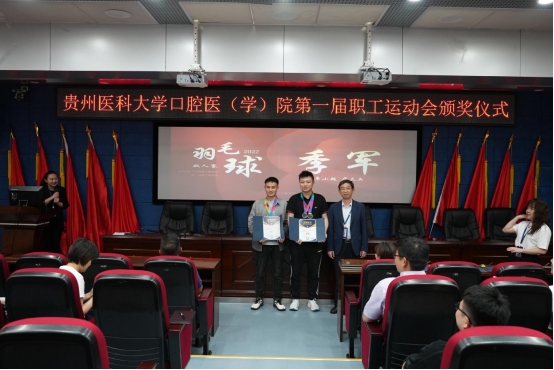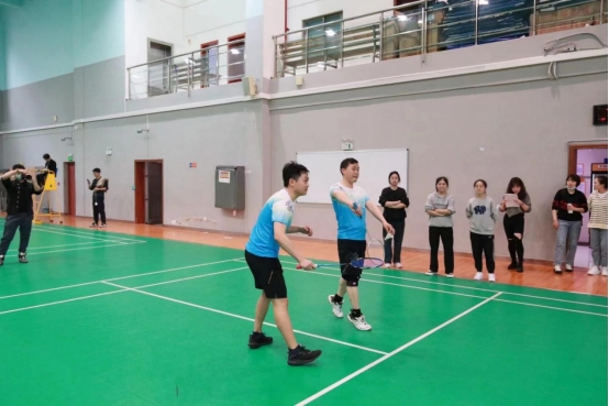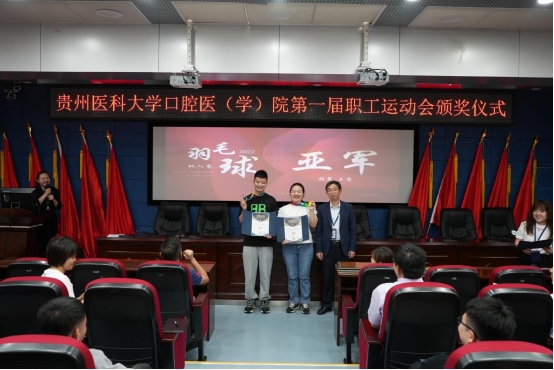 党委委员、副院长唐正龙为羽毛球双人赛冠亚季军颁奖