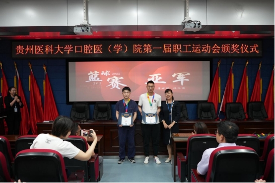 党委书记张军梅为3V3篮球赛冠亚季军颁奖