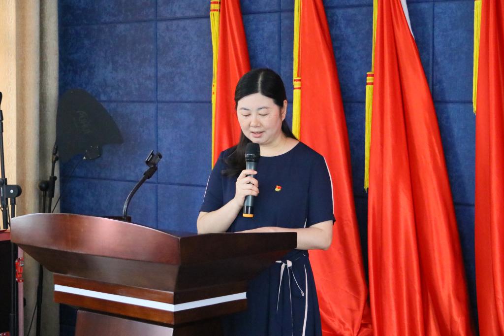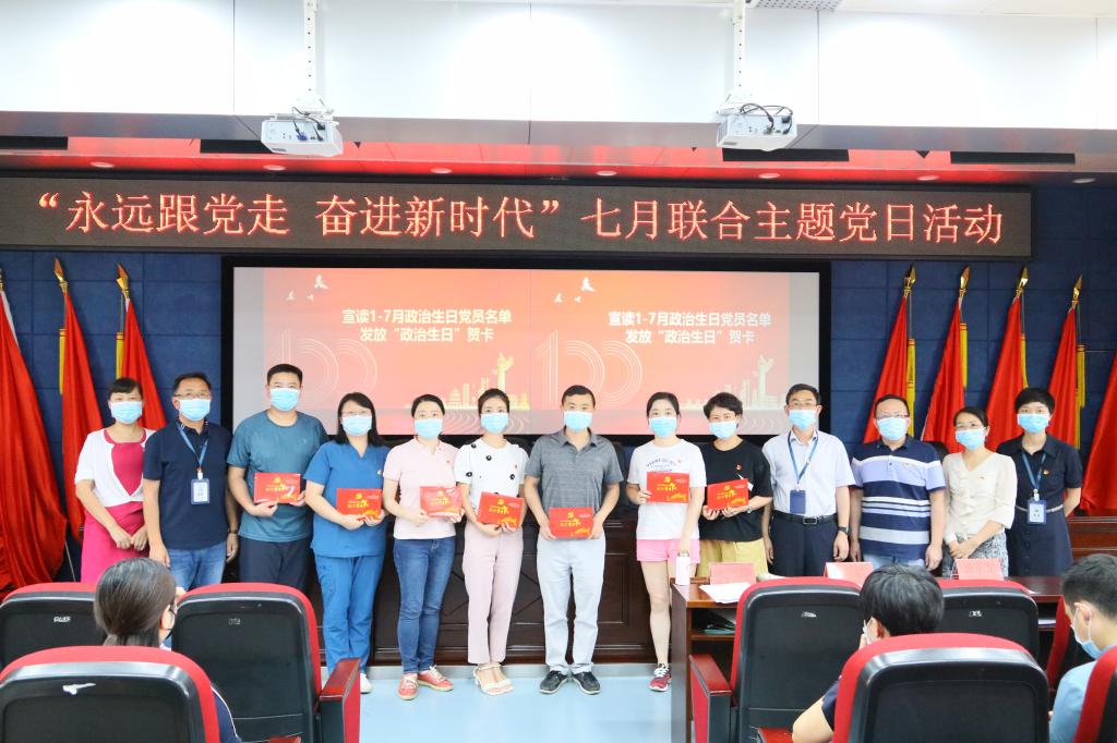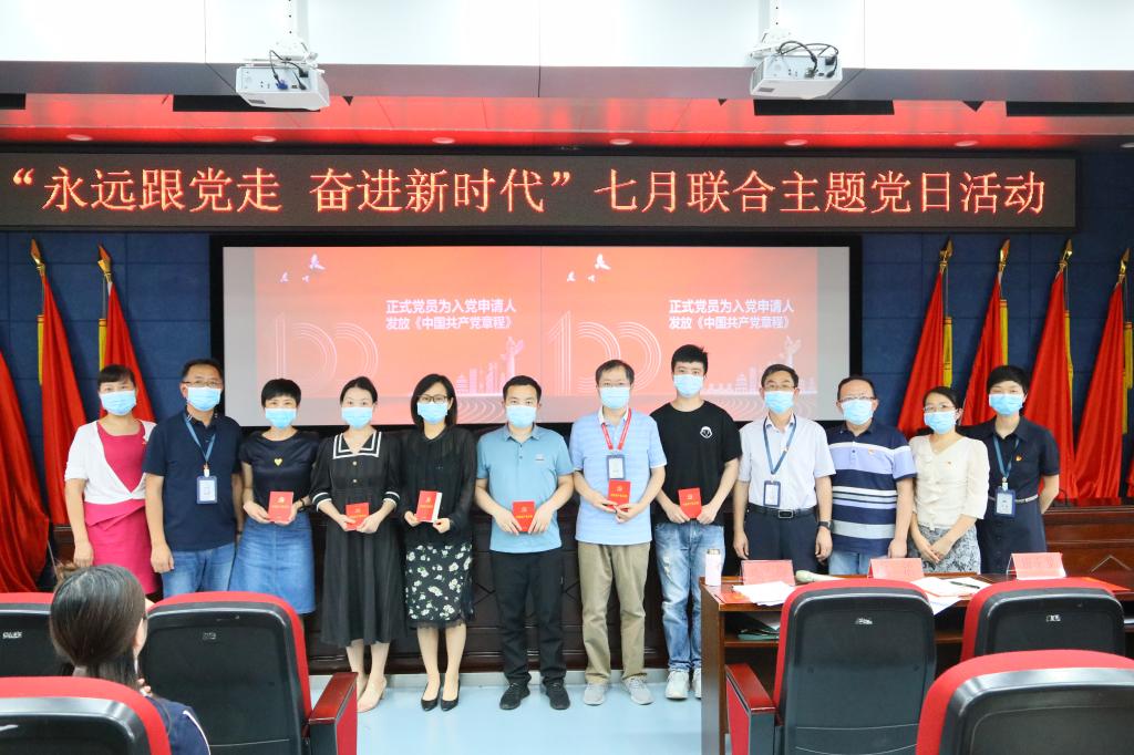 在观看《百炼成钢:中国共产党的100年》——《从石库门到南湖》专题教育片后,由张军梅带领全体党员进行入党宣誓。党委班子及委员为预备党员佩戴党员徽章,为入党申请人颁发《中国共产党章程》,何雨羲宣读政治生日为一至七月的党员名单,并为政治生日的党员送政治生日贺卡。预备党员代表洪梅发言,表示在鲜红的党旗下庄严宣誓无比光荣和自豪,将牢记入党誓词,坚定共产主义理想信念,爱岗敬业,争做一名合格的共产党员。