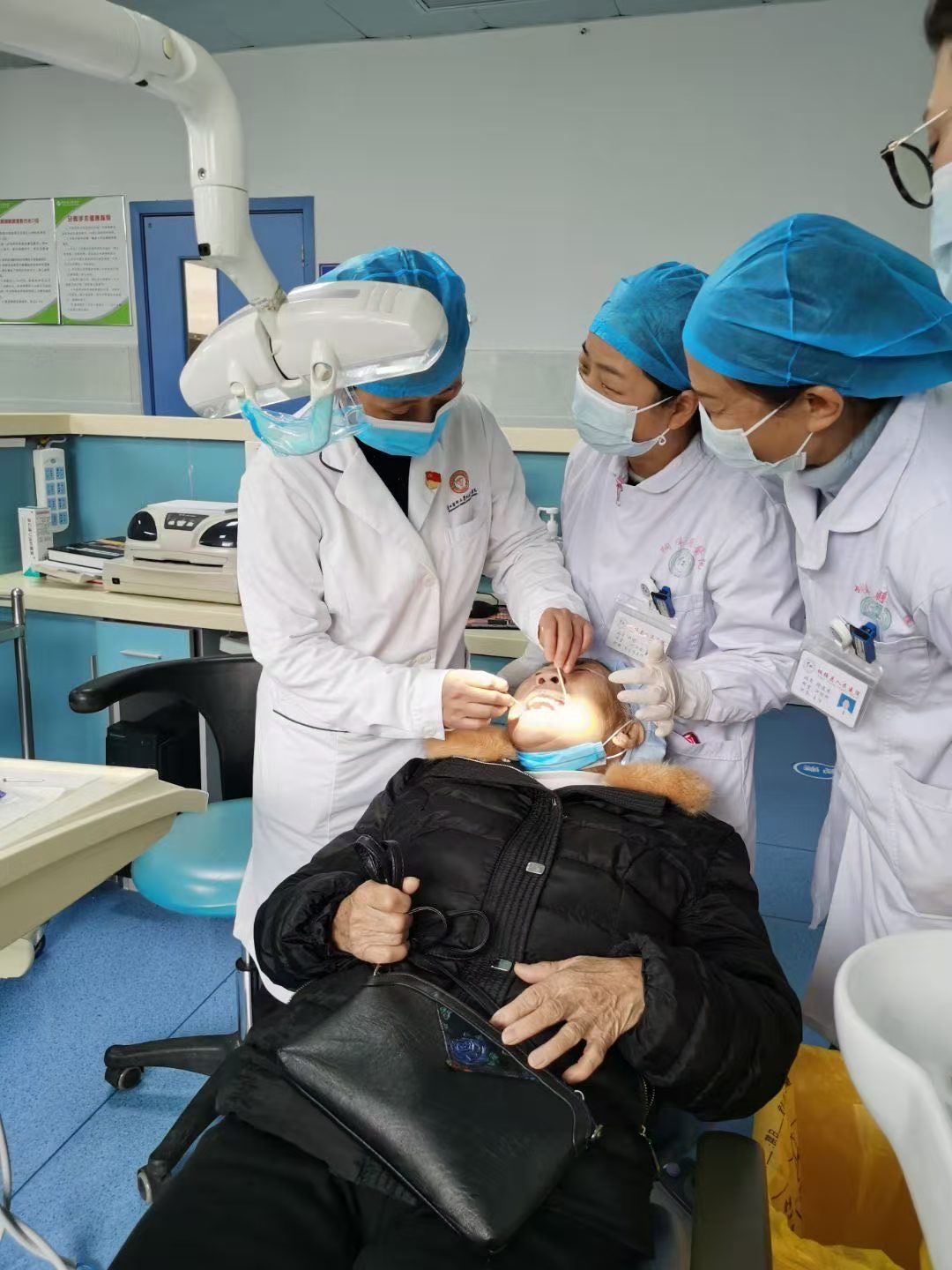 义诊现场来往人员络绎不绝,牙周黏膜科医护团队应用专业技能为当地患者提供优质的口腔诊疗服务,积极为患者制定诊疗方案,并耐心为患者和家属科普“健康口腔,牙周护航”的理念。除义诊外,医护人员还积极宣传口腔健康知识,免费测量血压,发放口腔保健用品,有效利用此次现场活动的机会,科普口腔疾病早期预防的理念,达到“治未病”的效果。