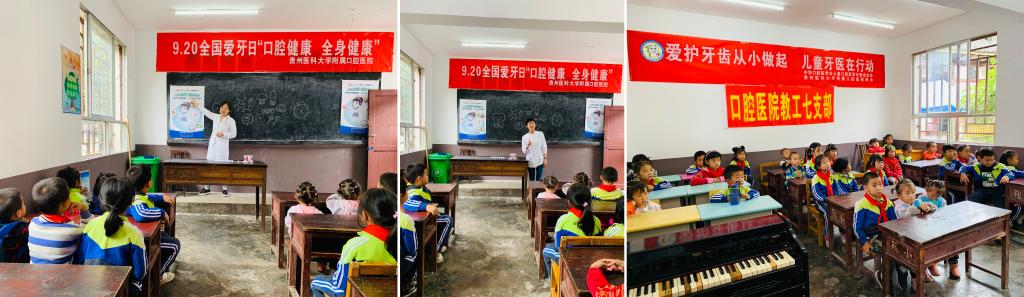 教工第七、第八党支部联合开展主题党日活动,走进乌当区新堡布依族乡陇脚村开展“9.20全国爱牙日‘口腔健康,全身健康’”义诊活动。此次活动以“爱护牙齿从小做起,儿童牙医在行动”为主题,在支部书记刘洪静、吴姗的带领下,教工七、八支部党员同志积极参与。