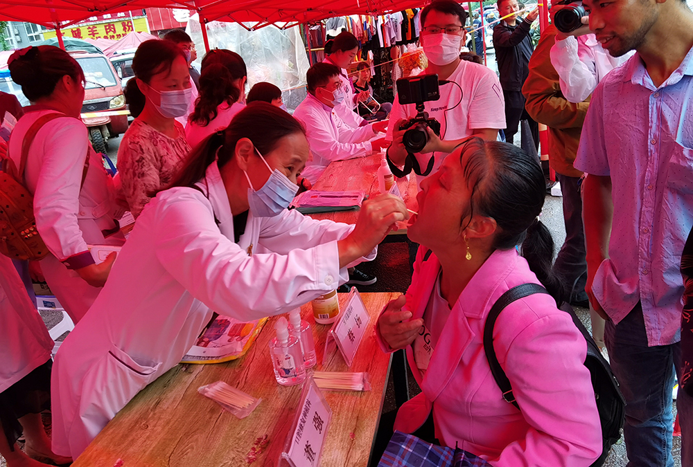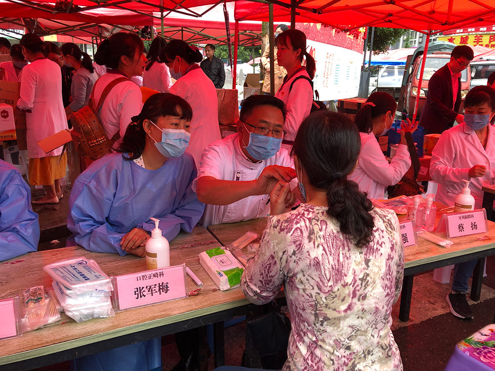 为将“精准医疗”与“精准扶贫”有效结合,多举并措开展医疗帮扶工作。5月24日,上午九点,由医院颌面外科、正畸科、修复种植科、牙周粘膜科、牙体牙髓科、预防及儿童口腔科、综合急诊科所组成的义诊专家团队,为前来咨询的乡民仔细检查口腔情况,对每个人的口腔状况作出系统的评估,针对各种具体情况提出相应的口腔专业治疗建议。据统计,共计300多名患者接受诊疗,共向群众宣传口腔健康知识,免费发放口腔药品、牙膏、牙刷、洗手液等物品1500多份。