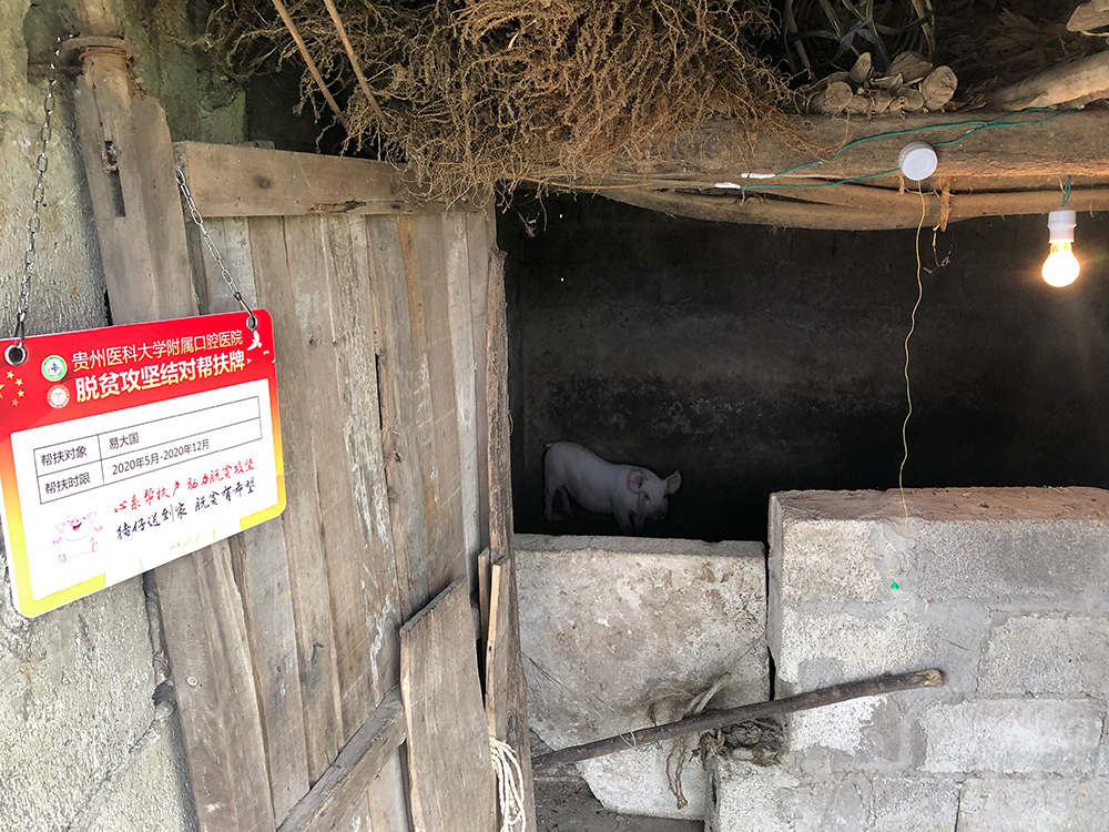 为开拓创新党建扶贫模式,医院党委与关岭县领导大胆探索符合当地贫困户劳动致富的方式方法,改包户捐款为专项结对帮扶购猪款,共4万元,让贫困户加强学习、主动劳作、辛勤致富,用循环的养猪经济改善生活质量,符合当地“稳定家禽产业、提升生猪产业”的发展方向;向50户贫困群众捐赠了健康包及床上用品,切实用“点对点”联系推进精准服务,走村探户深入贫困户家中,用老百姓听得懂的话沟通“产业”优势、帮扶目标,同时探望贫困户居民,为其免费检查口腔,赠送生活物资;实地看望富康、幸福社区的易地搬迁户,了解搬迁居民的吃住情况和其他实际的困难需求,并为其捐赠被褥,希望搬迁户能从“搬得出”向“稳得住、能致富”转变,在劳动致富中获得幸福感和安全感。