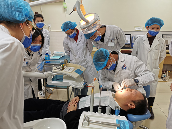 一行在仁怀市人民医院院领导的陪同下对口腔科门诊部进行实地考察,并对仁怀市人民医院口腔科的建设发展展开讨论。同时,诊治了两位患有口腔疾病的患者,得到了患者和现场口腔医护人员的一致称赞。