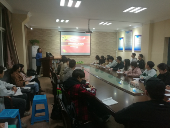 之后,胡睿书记对学生支部全体党员同学进行了题为党员发展程序的专题党课,从主要依据、总体要求、工作原则、工作程序四个方面展开,重点对工作程序中党员发展的5个阶段25项程序进行了讲解,并对毕业生党员组织关系的接转进行了重点说明。