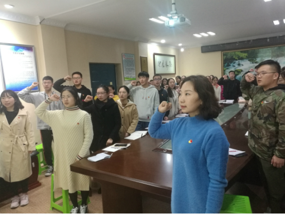 最后,胡睿书记带领支部全体党员进行了“重温入党誓词”活动。支部党员通过再次学习入党程序和重温入党誓词,加深了对自己党员身份的认同感和荣誉感,更加坚定了身为共产党员的理想信念。