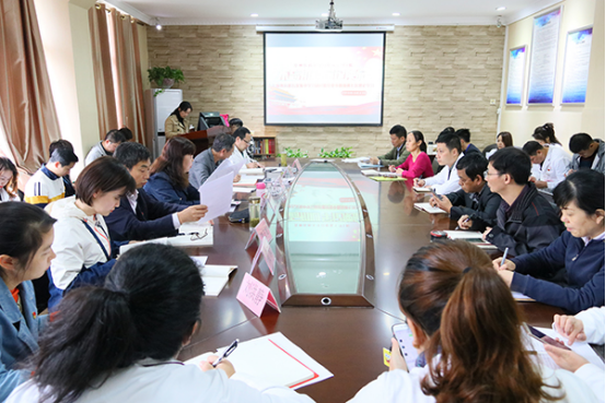 在北校区行政楼五楼会议室开展“不忘初心、牢记使命”主题教育第五次集中学习研讨暨党委中心组第七次理论学习。院党政领导班子、各党支部书记及委员、全院副科级以上干部、各临床医技科室及职能部门主要负责人、院主题教育领导小组办公室及督导组全体成员参加了本次会议。研讨会由院党委书记、院主题教育领导小组组长张军梅及院党委副书记、院长马洪主持。