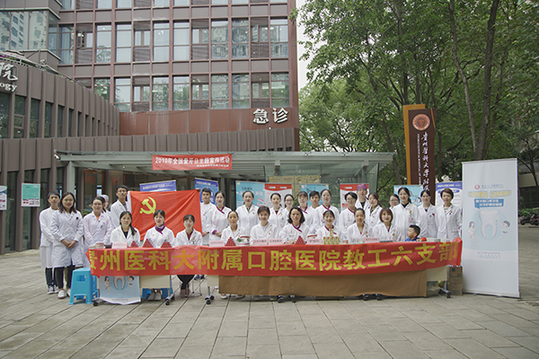 教工第六党支部组织的2019年“全国爱牙日”主题宣传暨大型义诊活动在医院院前广场举行。院党委副书记钱禾作启动仪式主持,强调口腔健康,教育为先,通过开展这样的公益活动,将口腔健康知识传递到群众中去,为提高全民口腔健康、维护全身健康,贡献口腔医护工作者的力量。