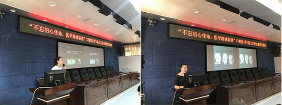 会上,各支部代表以不同角度和方式进行交流汇报,教工一支部周天、教工四支部蓝熙、研究生党支部李芳、本科生党支部袁丹萍、教工三支部王远达、教工七支部郭婷婷、教工六支部黄云骥、教工五支部杨桦、教工八支部杨晓春、教工二支部张婷,分别以《时代最强音》、《修复病例展示》、《上颌前牙区骨量不足型GBR+个性化基台美学修复1例》、《这个夏天,从“齿”开始》、《奔跑的骨头》、《专创融合项目开展情况》、《牙体牙髓科病例展示》、《隐形矫治在我科的开展情况暨病例汇报》、《手术患者术前访视新模式》、《营造良好党建氛围,助力党建工作新发展》为题展示近期的支部工作开展情况。