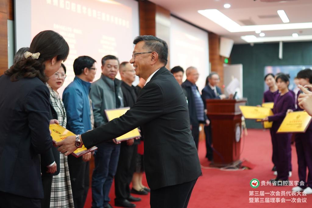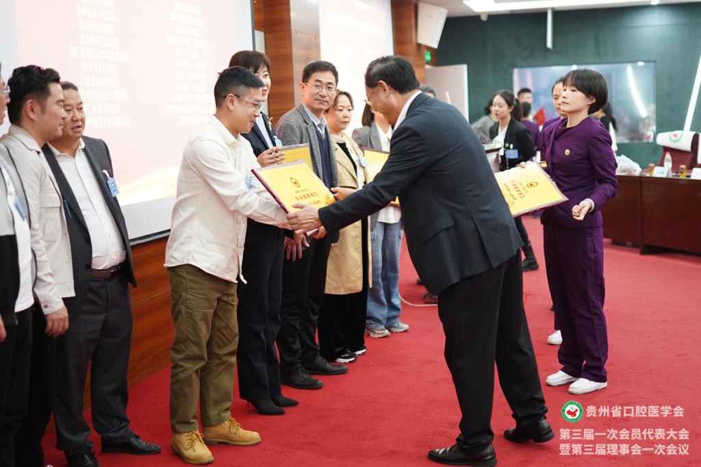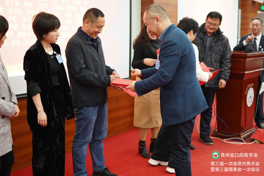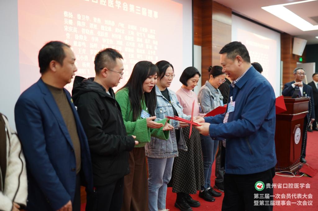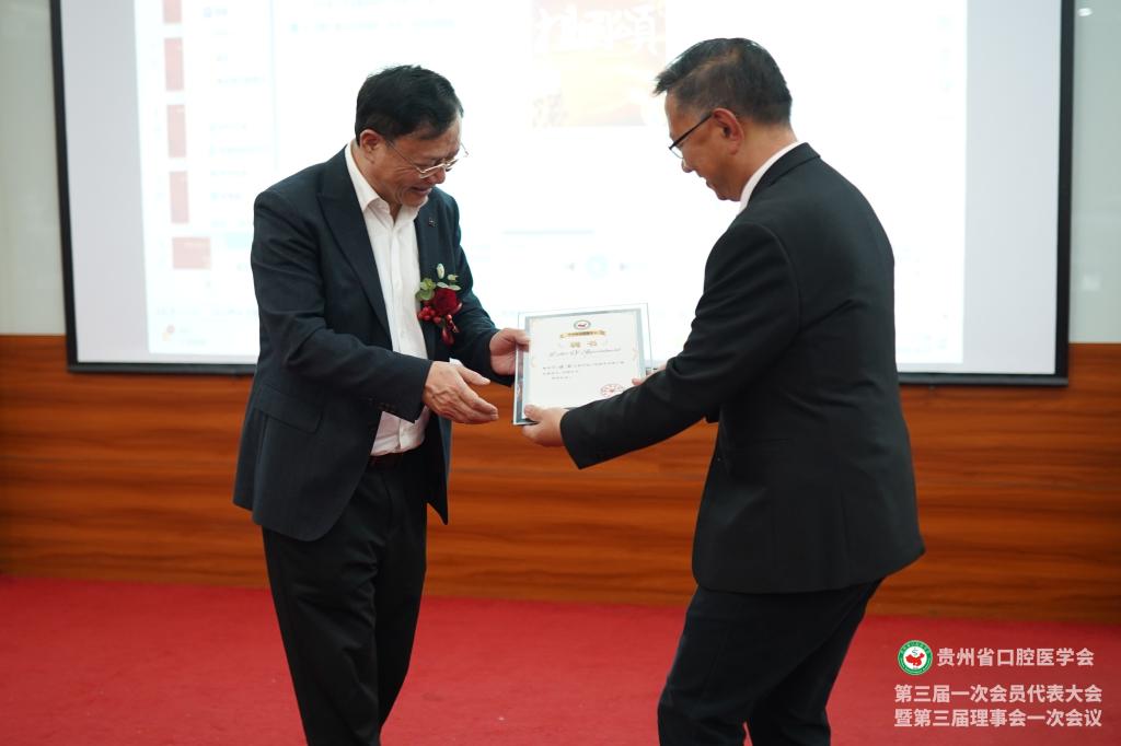 会议为贵州省口腔医学会新一届理事、会员授牌,并颁发了聘书和感谢状。