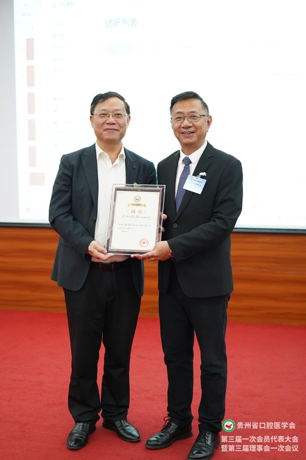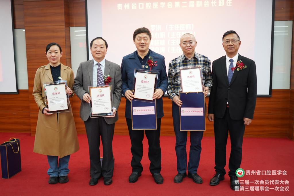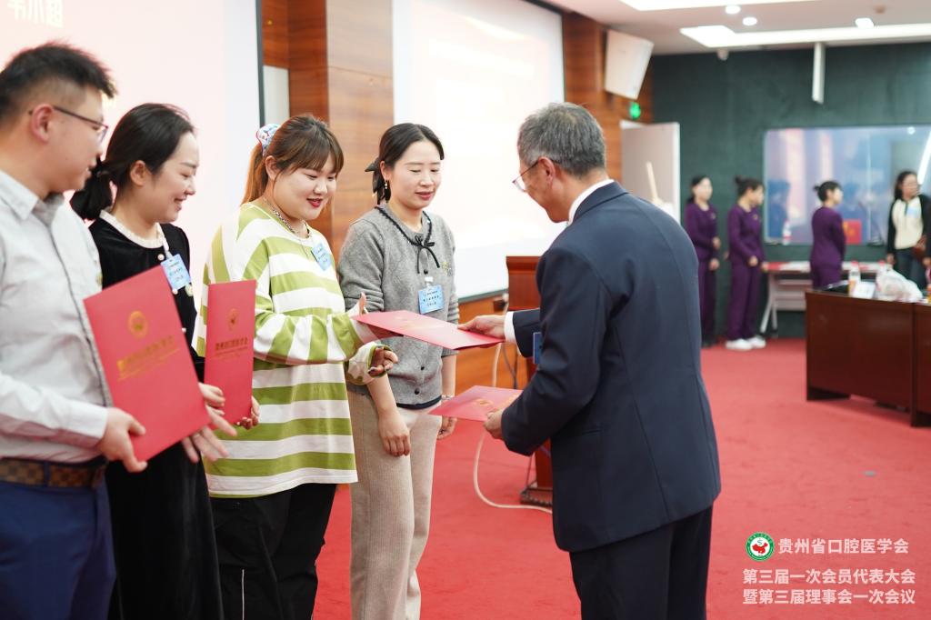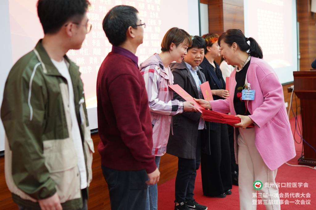 会议为贵州省口腔医学会新一届理事、会员授牌,并颁发了聘书和感谢状。