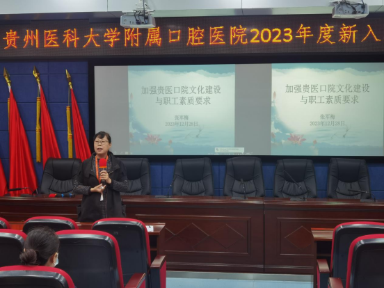 在行政楼5楼学术报告厅举办了为期4天的新入职员工培训,院党委书记张军梅,党委副书记、院长马洪,党委委员、副院长唐正龙,相关职能部门、临床科室负责人现场为38名新入职员工培训。培训由人事科负责人齐琦主持。