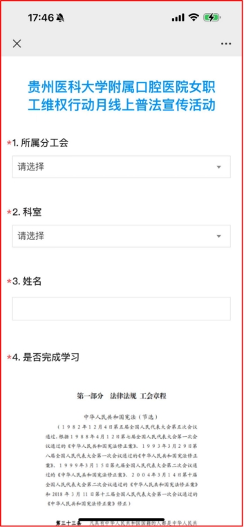 3月1日—3月8日,用网络为媒介,制作普法问卷,上传学习文件,让大家随时随地了解相关法律法规。
