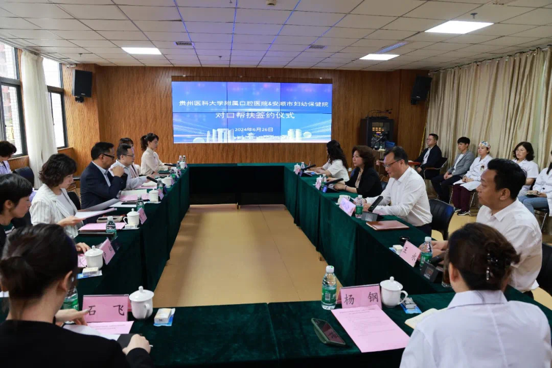 党委副书记、院长马洪,党委委员、副院长董强带领医务科、护理部、预防及儿童口腔科、正畸二科一行7人赴安顺市妇幼保健院签署对口帮扶协议并召开座谈会。安顺市妇幼保健院党委书记杨荔,党委副书记、院长徐磊,党委委员、副院长张璇,副院长王永及各职能科室主任参加会议。
