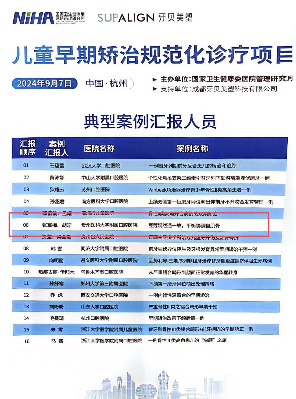 党委书记张军梅、正畸科医生胡笳受国家卫生健康委医院管理研究所邀请赴浙江杭州参加典型案例交流会并进行优秀病例现场汇报。