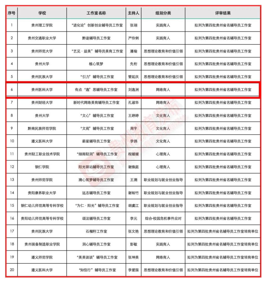 近日,省委教育工委、省教育厅公示关于第四批贵州省名辅导员工作室的评审结果,91直播