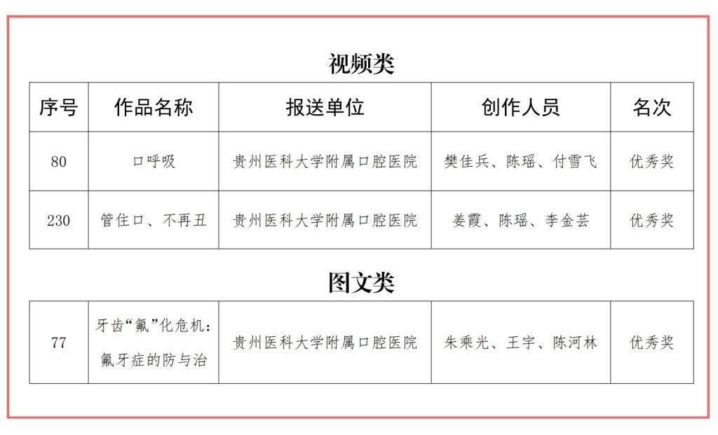 此次获奖,是对91直播 在健康科普领域工作的高度肯定,未来,我们将继续砥砺前行,创作更多高质量的健康科普作品,为贵州省口腔健康事业的发展不懈努力!