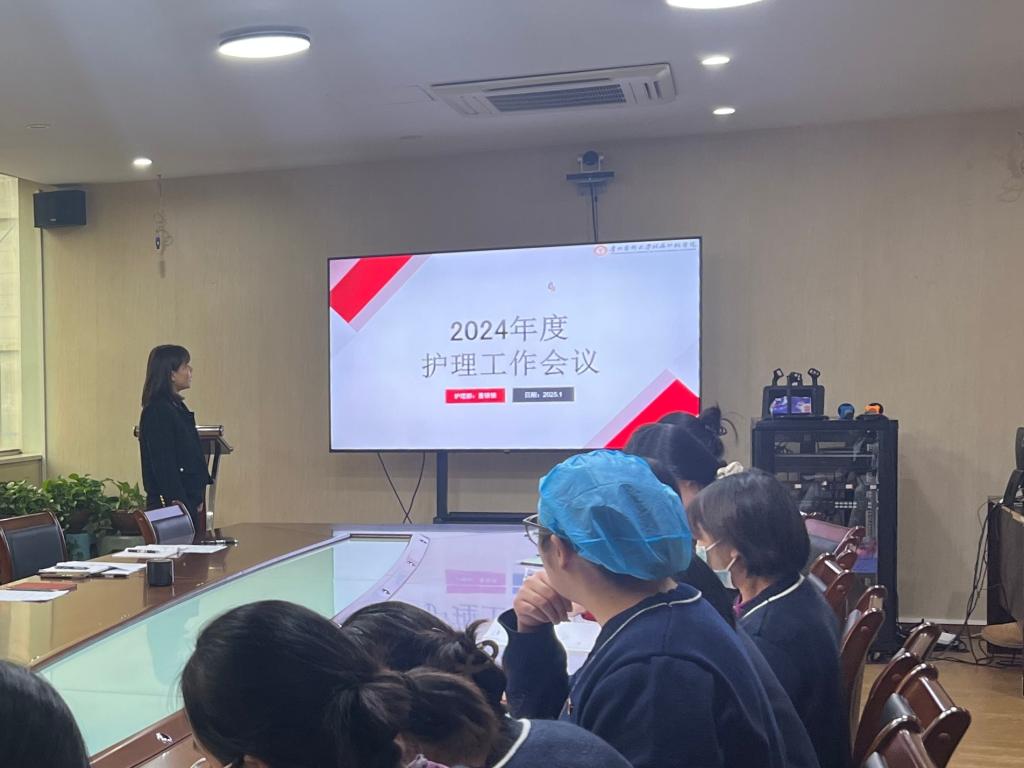 董银银汇报了2024年护理质控工作开展情况、全年工作亮点、全院护士在职继续教育培训情况及护理不良事件总结,深刻剖析了护理管理、安全管控、优质护理服务及在职继续教育培训等方面存在的短板,同时展示了过去一年的工作成效,并制定了2025年的护理工作计划,要求进一步强化护理目标管理,提升服务质量,完善相关制度、强化护理质量监控与考核及培训教育,确保护理安全。