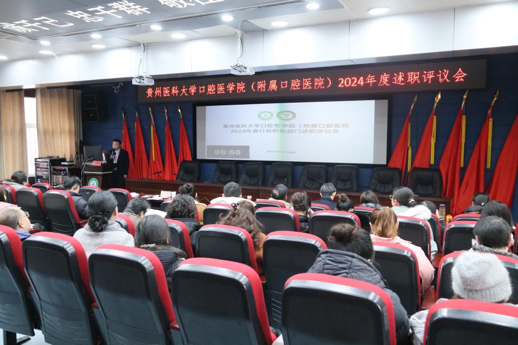 在学术报告厅召开工作会议,进行2024年度行政职能部门、临床医技科室述职评议。院党政领导班子成员出席会议,副院长董强、廖健主持会议。