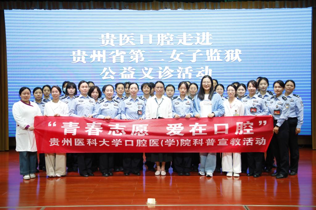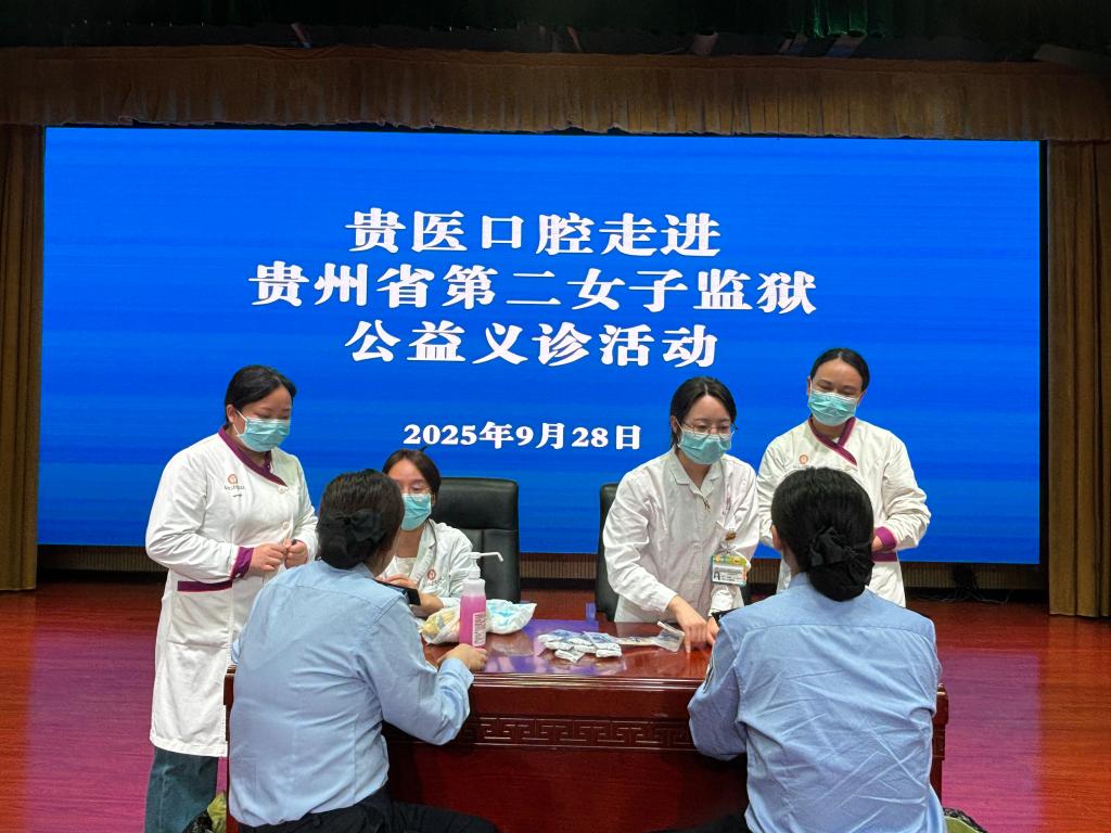 (后文简称贵医口腔)联合贵州省励志公益发展中心走进贵州省第二女子监狱开展“齿健警强”公益义诊活动,通过专业义诊与科普讲座相结合的形式,切实筑牢监狱民警的口腔健康防线。此次活动由贵医口腔义诊团队陈仕红、段姗姗、杨晓春、冯静、黄朝芬等人;贵州省励志公益发展中心周巧明、周雪琴共同参加。